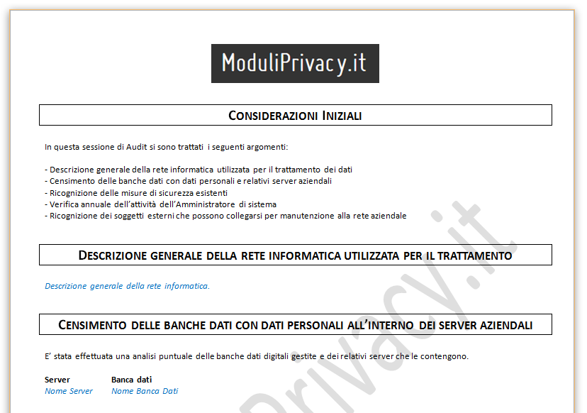 I Titolari che trattano una elevata mole di dati personali corrono il rischio di incorrere in pesanti sanzioni in caso di irregolarità nei trattamenti, sanzioni che possono essere amministrative (anche fino a 100 mila euro) e penali, arrivando nei casi più gravi all'arresto fino a 3 anni. Alla luce di questo incombente regime sanzionatorio, è altamente consigliato predisporre un programma di Audit periodici, da affidare ad un soggetto esterno dotato di indipendenza di giudizio, capacità, esperienza e affidabilità. La frequenza degli audit privacy può essere mensile o trimestrale, ed è auspicabile che tali sessioni vengano effettuate seguendo quanto previsto dalla norma standard ISO 27001:2014.